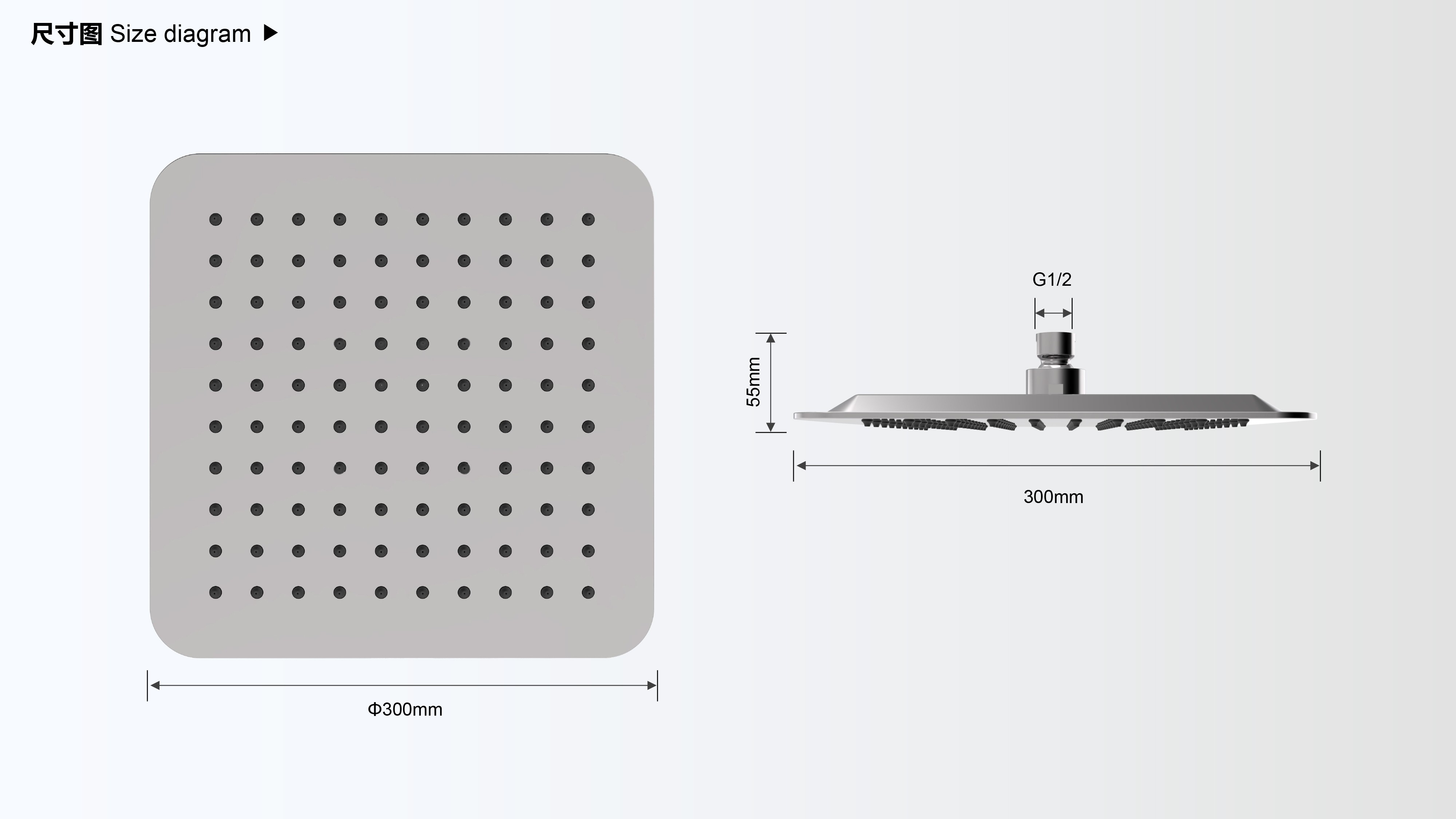 Size:300X300mm;CUPC/ WaterSense/ WRAS/ ACS認(rèn)證