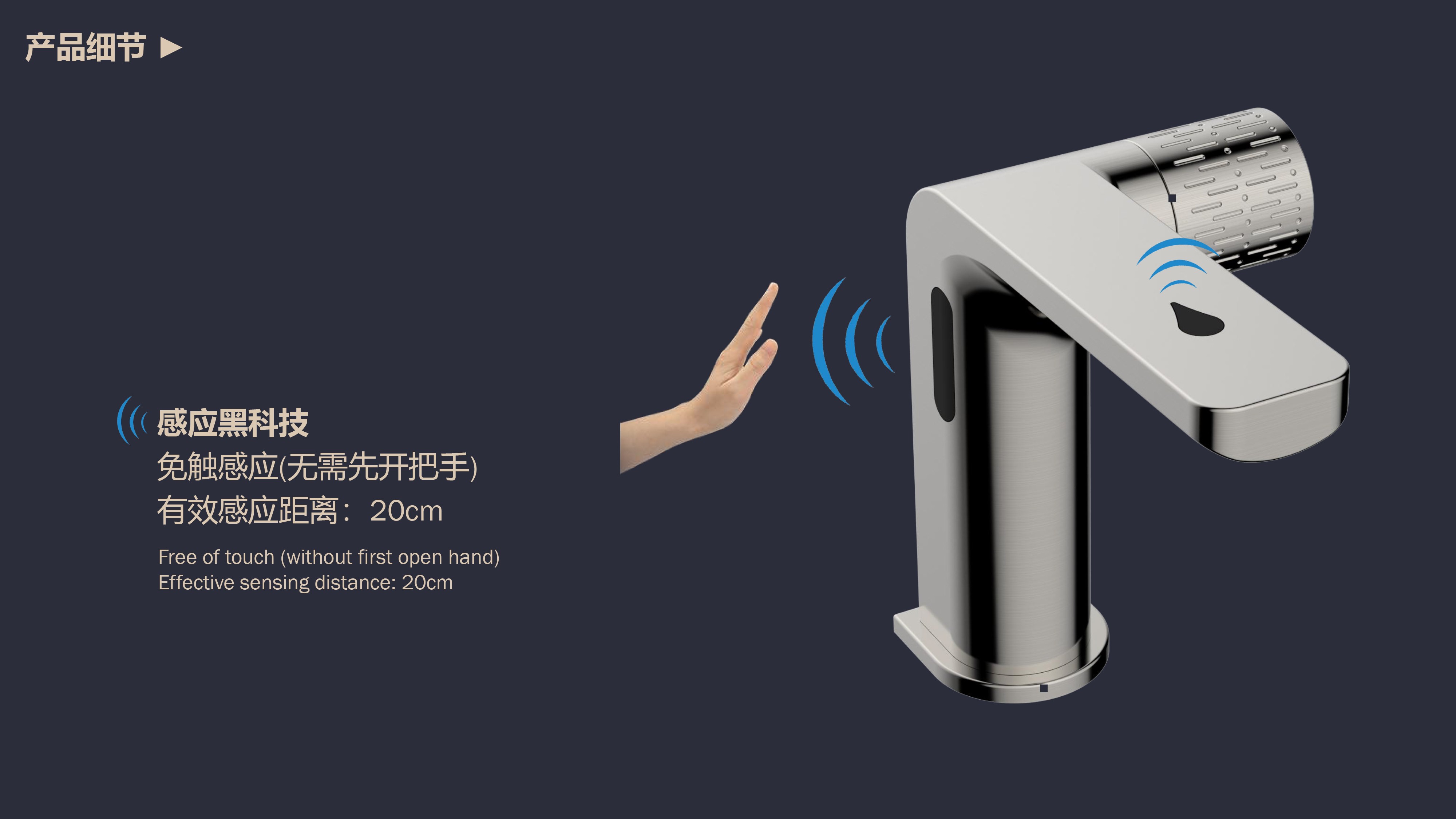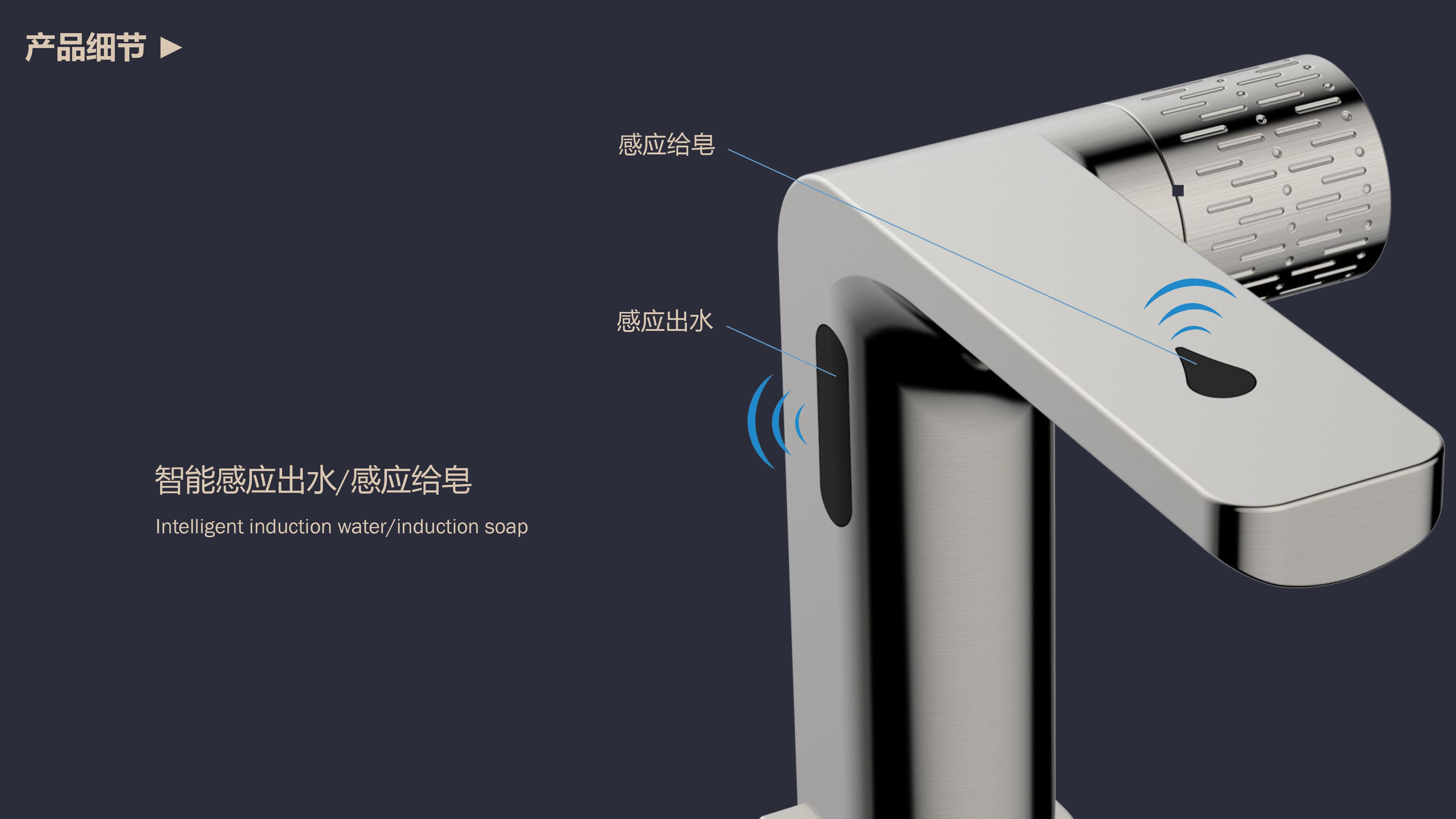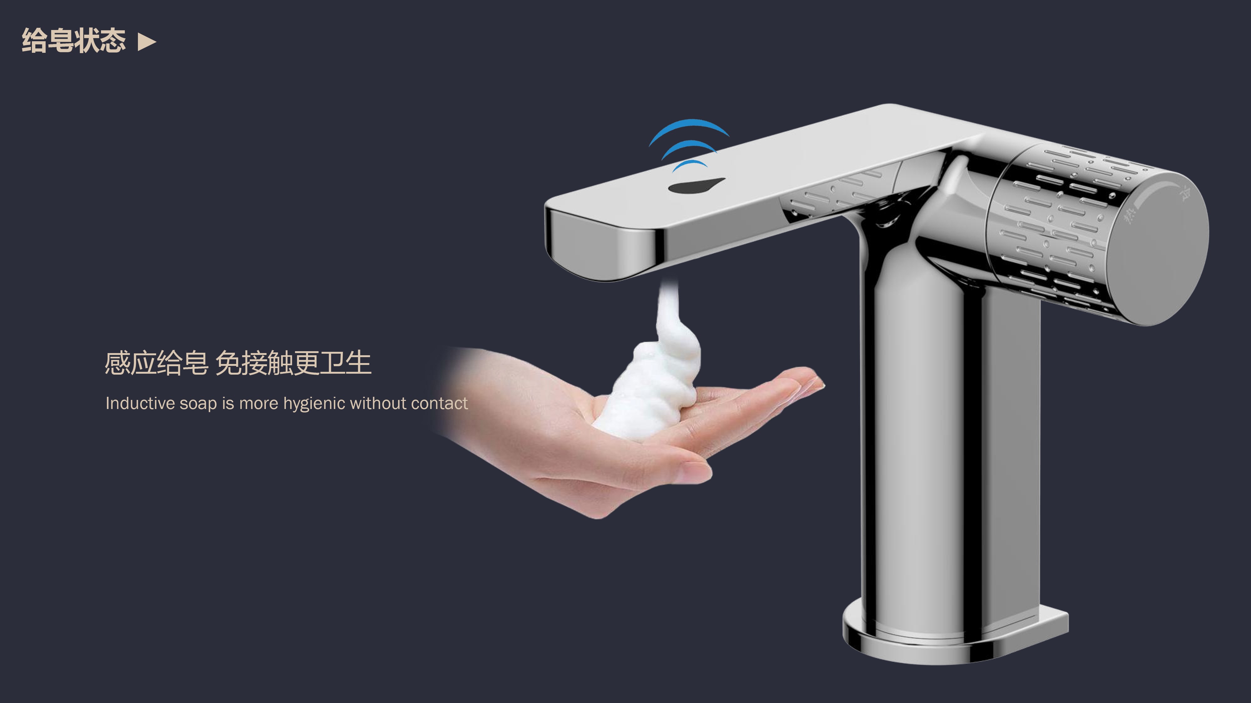 0接觸更健康,感應(yīng)給皂雙控龍頭;有效感應(yīng)距離20cm;智能芯片恒溫專利技術(shù);氣泡水觸感細膩不飛濺