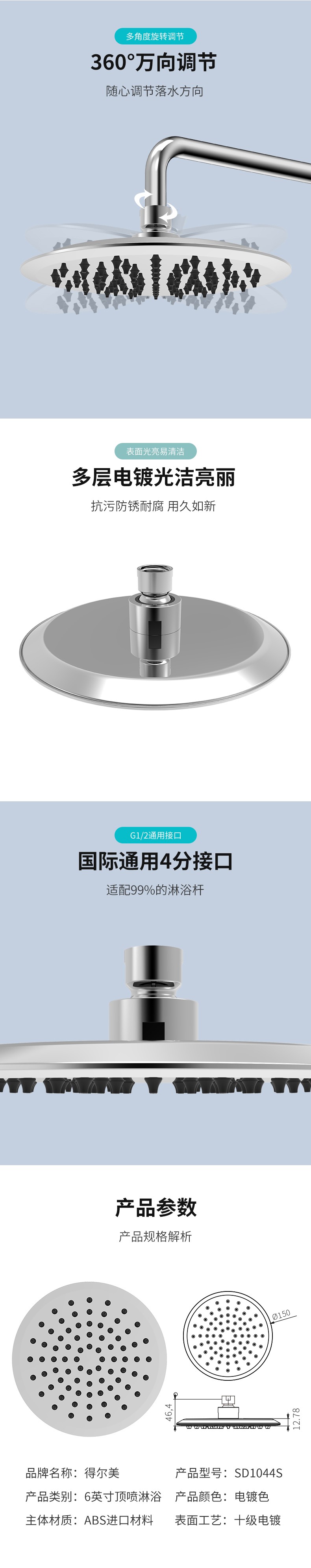 6-inch Extra-thin ABS Rain Shower SD1044s
