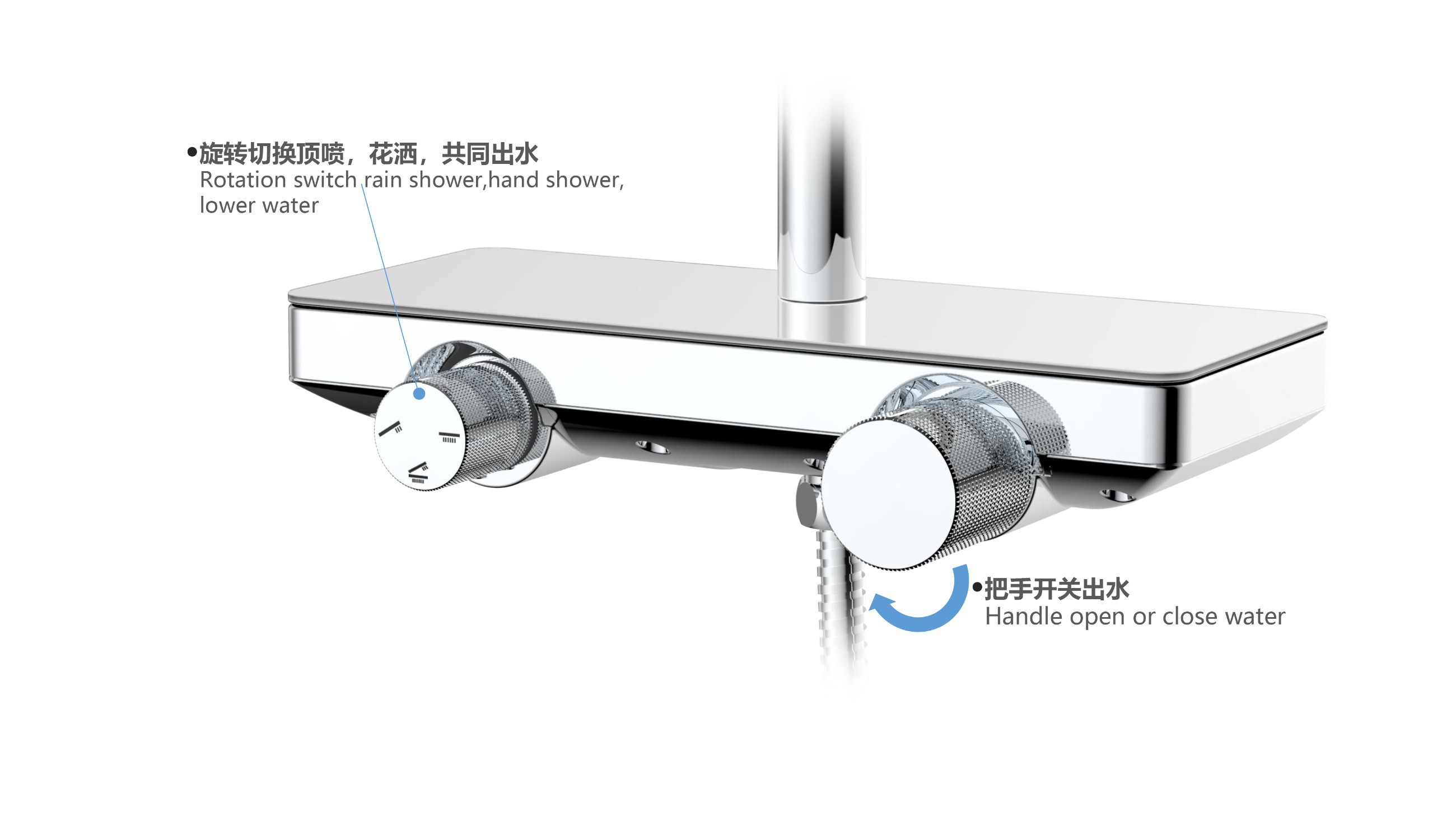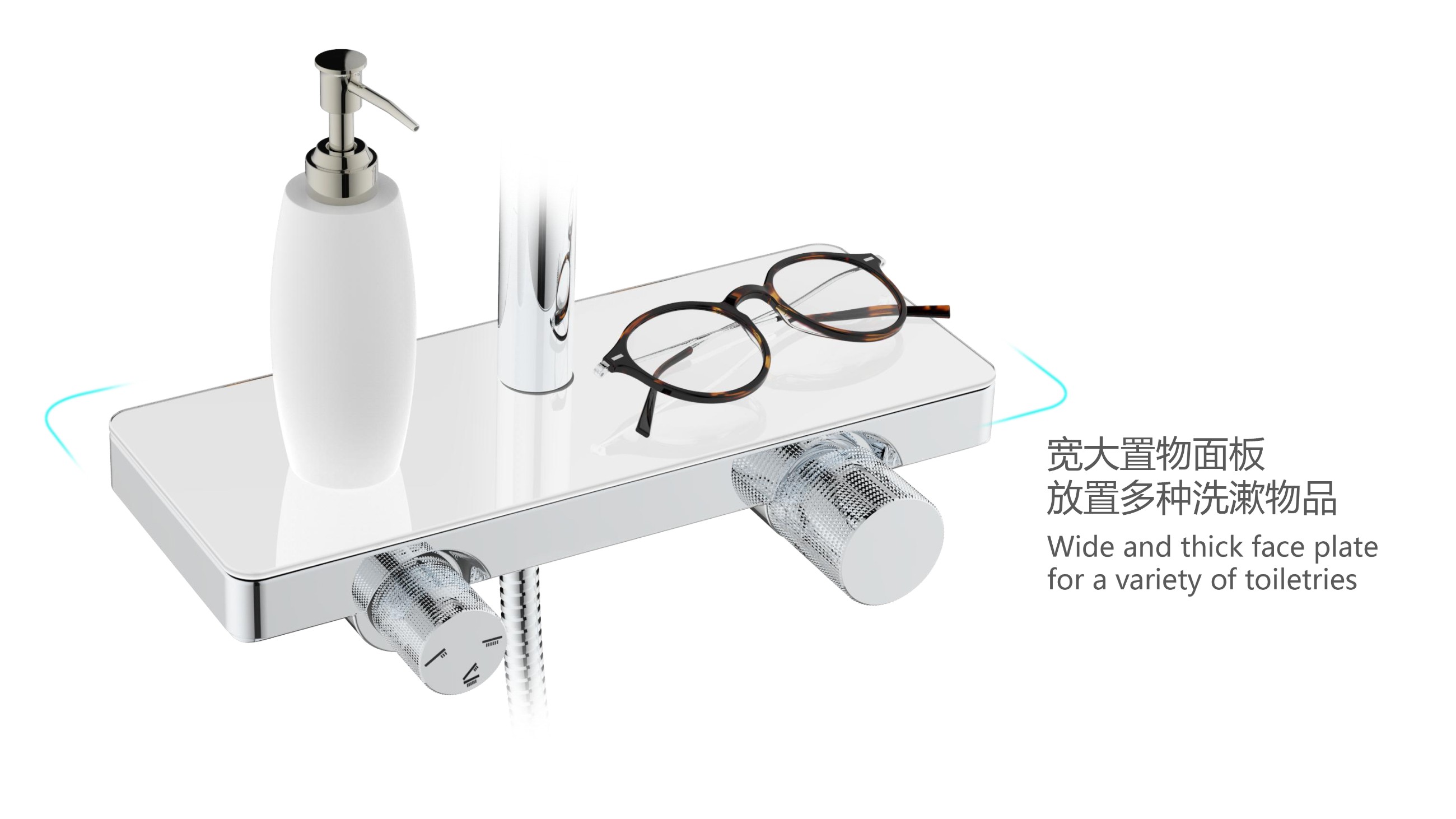 至美星空花灑;寬大置物面板放置洗護用品;旋轉(zhuǎn)切換頂噴/花灑/下出水